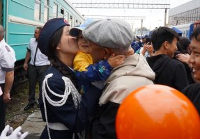 Поезд медленно подошёл к перрону, и мы сразу заметили в окнах улыбающиеся лица. Когда ребята вышли, их оглушили аплодисментами. Представители Департамента полиции, администрации школы, родные и друзья пришли поздравить и сказать тёплые слова.