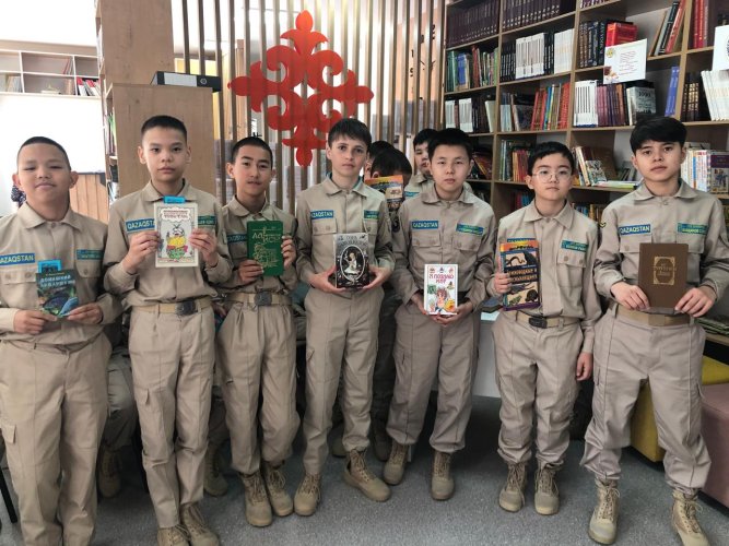 А ещё, наведя камеру смартфона на штрих-коды на страницах, мы совершили виртуальное путешествие по страницам книг Асель Имайо «Сказки волшебной скрипки» и «Первая энциклопедия с видеоуроками» по химии авторов Александра Иванова, Игоря Гордия. Знакомились с новинками книг писателей Казахстана, ближнего и дальнего зарубежья. Нам вручили закладки, буклеты, подготовленные к памятным датам разных писателей, визитки. Участники литературных конкурсов – учащиеся 7 «Б» 1 класса «Жас сарбаз», – Нұрлан Ақторе и Самир Серикжанов прочли отрывки из произведений: Аделии Амраевой «Футбольное поле», Зиры Наурзбаевой «Приключения Бату и его друзей».