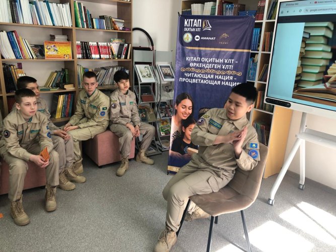 Мы встретились в библиотеке нашей школы и узнали много полезного. Например, то, что в нашей стране есть праздник – Национальный день книги, учреждённый в 2024 году. Мы отвечали на вопросы блиц-опроса «Любите ли вы читать?», вспомнили пословицы о книгах на казахском языке. Выполняли интересное задание: называли улицы нашего города, названные в честь писателей. Их оказалось немало, насчитали целых двадцать! Участвовали в викторине «Узнай писателя по портрету». Получилось узнать – Абая Кунанбаева, Ибрая Алтынсарина, Джамбула Джабаева…