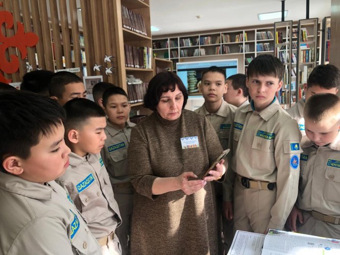 В преддверии Национального дня книги библиотекари филиала «Строительный» провели для учеников 6 «Б» 1 класса гимназии им. Б. Момышулы акцию «Книги – ступеньки к прогрессу нашей нации».