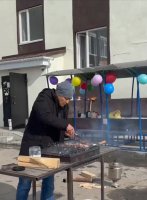 Во дворе выставили столы, поставили большой қазан для плова и баурсаков. Ароматы разносились далеко вокруг… и, если честно, пройти мимо было просто невозможно. Ну и, конечно, без шашлыков тоже не обошлось - куда же без них в такой день.
