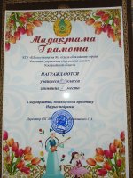 Когда к нам пришли члены жюри, мы встретили их по казахской традиции шашу, осыпая гостей конфетами, желая радости и благополучия. В это время на фоне звучали весенние казахские песни. Наша программа тоже была небольшой, но очень душевной – Айдана Рамазанова исполнила мелодию на домбре, а Рауан Кундыбаев прочитал бата – традиционное благословение. Жюри оценило наше старание, и мы заняли первое место!